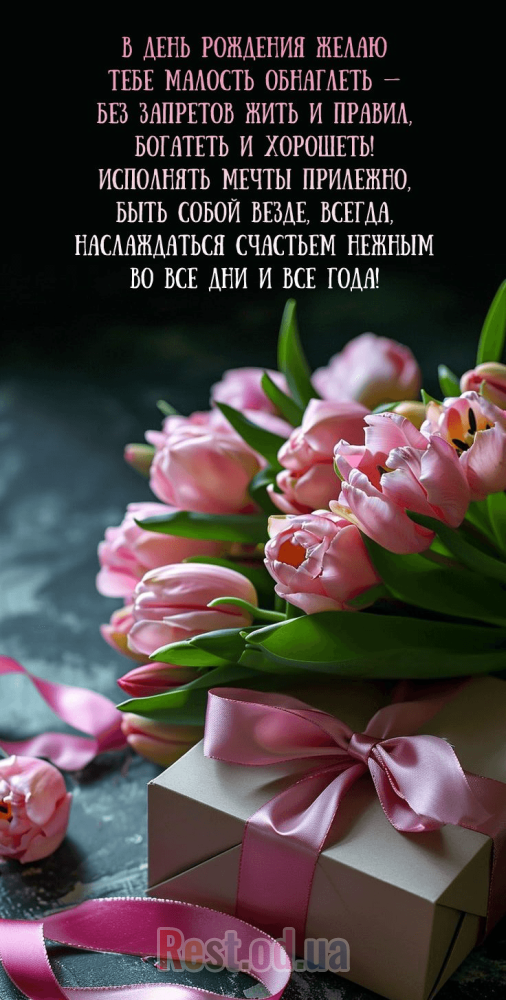 "Дорогая, жизнь — это книга, и каждый новый год — это новая глава. Пусть в твоей книге будет как можно больше страниц, наполненных радостью, достижениями и счастливыми мгновениями. Пусть судьба пишет для тебя только добрые истории, а трудности превращаются в ступени к успеху. С днем рождения!"